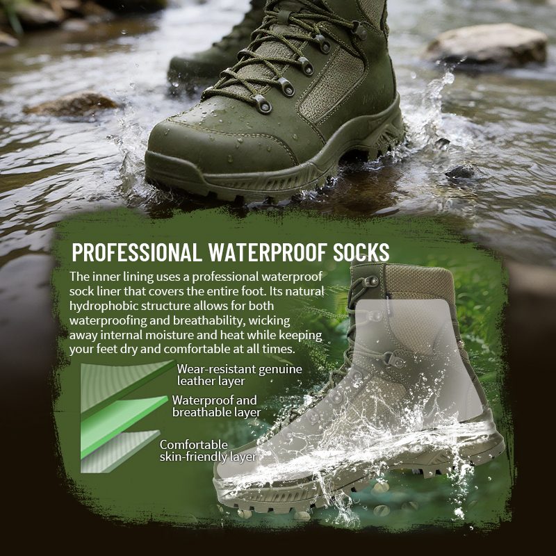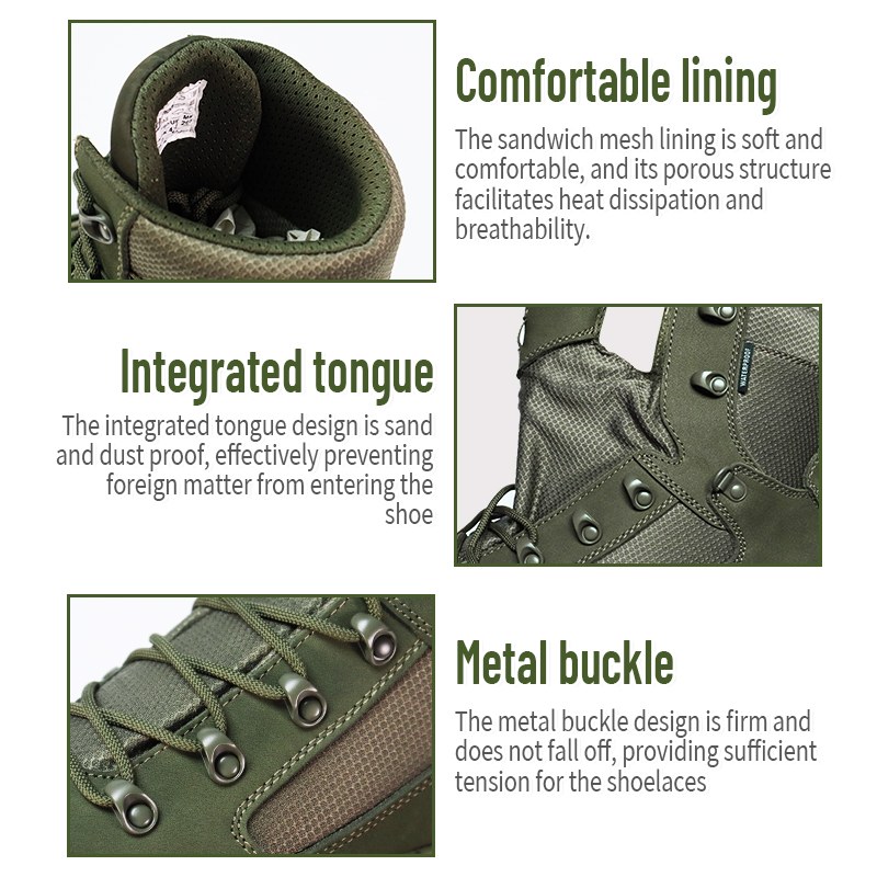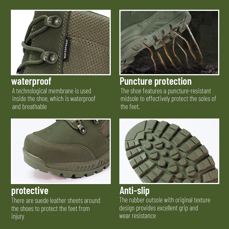 கரடுமுரடான நிலப்பரப்பு. மறைக்கப்பட்ட ஆபத்துகள். கணிக்க முடியாத மைதானம். பஞ்சர்-ப்ரூஃப் வாட்டர் ப்ரூஃப் காம்பாட் பூட்ஸ் நீங்கள் கீழே பார்த்து கவலைப்பட முடியாத தருணங்களுக்காக உருவாக்கப்பட்டுள்ளது. நகங்கள், கண்ணாடி மற்றும் கூர்மையான குப்பைகளை நிறுத்தும் பஞ்சர்-எதிர்ப்பு மிட்சோலுடன் வடிவமைக்கப்பட்டுள்ளது, மேலும் ஈரமான சூழ்நிலையில் உங்களை நகர்த்த வைக்கும் முழு நீர்ப்புகா பாதுகாப்பு. மேலும் தகவலுக்கு எங்களுக்கு விசாரணை அனுப்பவும்.