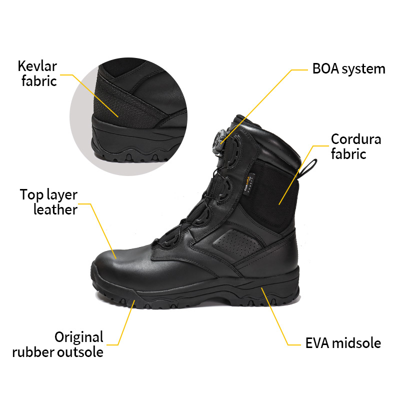 இந்த விரைவு-ஆன்/ஆஃப் சிஸ்டம் போலீஸ் பூட்ஸ் கையிருப்பில் உள்ளன, மேலும் ஆர்டர்கள் 10 ஜோடிகளில் இருந்து தொடங்கும். மேலும் விவரங்களுக்கு அல்லது விலை விசாரணைகளுக்கு, எப்போது வேண்டுமானாலும் தொடர்பு கொள்ளலாம். தனிப்பயனாக்கம் குறைந்தபட்சம் 800 ஜோடிகளுடன் கிடைக்கிறது. மேலும் இந்த மாதிரி பின்வரும் நன்மைகளைக் கொண்டுள்ளது: