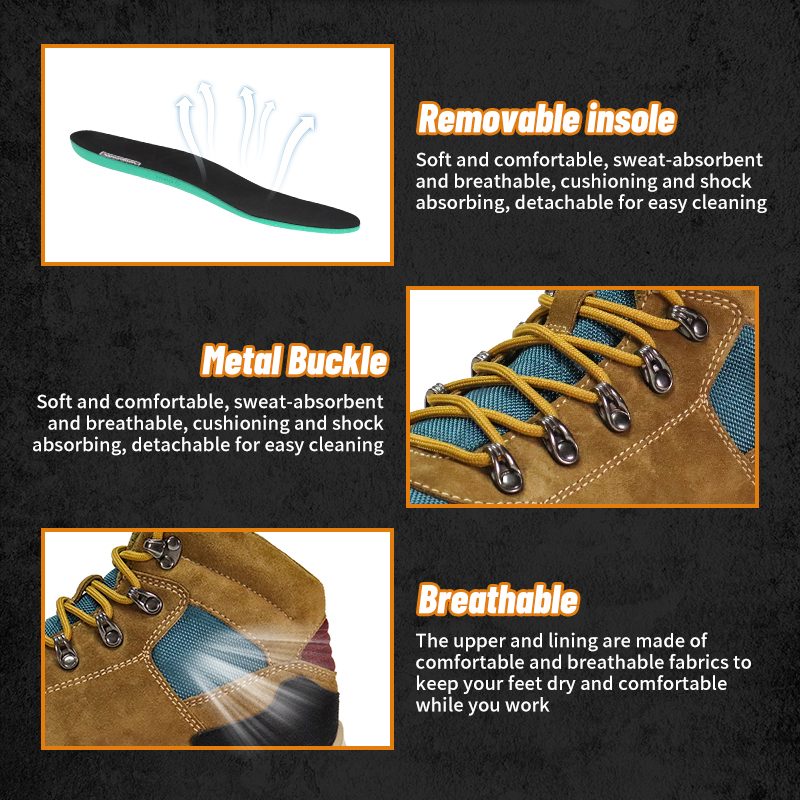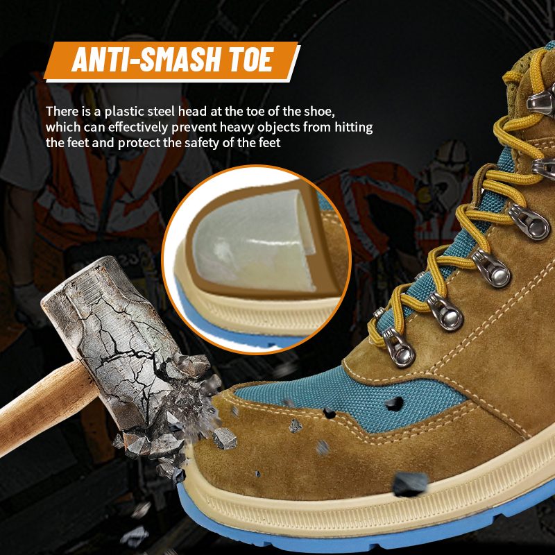 ஷூவின் கால்விரலில் ஒரு பிளாஸ்டிக் எஃகு தலை உள்ளது, இது கனமான பொருட்களை பாதங்களில் தாக்குவதை திறம்பட தடுக்கும் மற்றும் பாதங்களின் பாதுகாப்பைப் பாதுகாக்கும்.