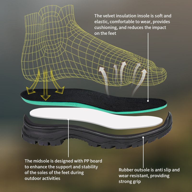 ③விடாத ரப்பர் அவுட்சோல். பிடிகள், நீடிக்கும், நம்பகமானதாக இருக்கும்.