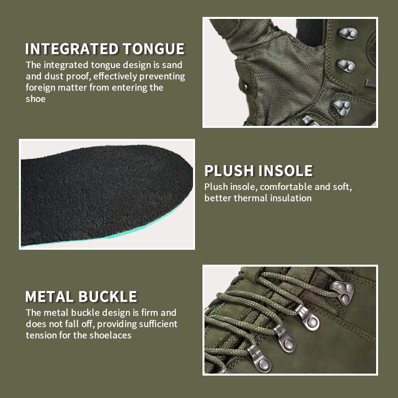 இந்த Sympatex வாட்டர்ப்ரூஃப் இன்சுலேஷன் தின்சுலேட் ஹண்டிங் பூட்ஸ் வண்ணங்கள், பொருட்கள் மற்றும் விவரங்களில் தனிப்பயனாக்கக் கிடைக்கிறது, MOQ 800 ஜோடிகளுடன், பிராண்ட் ஒத்துழைப்பு மற்றும் குழு கொள்முதல் ஆகியவற்றிற்கு ஏற்றது. இந்த வேட்டை பூட்ஸ் பின்வரும் நன்மைகள் உள்ளன: