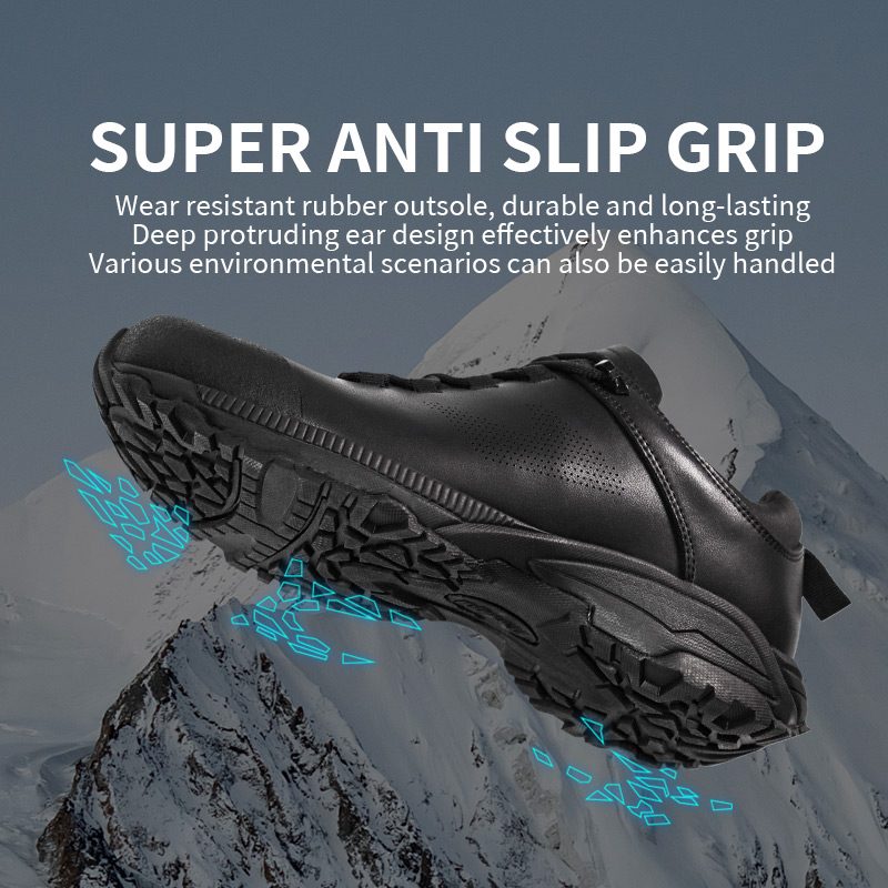 லேசான மழை அல்லது ஈரமான பாதைகள் பயணத்தை அழிக்காது. வாட்டர் ஸ்பிளாஸ் பாதுகாப்பு லெதர் ட்ரெக்கிங் ஷூக்கள், ட்ரீட் செய்யப்பட்ட லெதர் அப்பர்களை ஒருங்கிணைத்து, ஈரப்பதத்தை நீக்கி, நாள் முழுவதும் உங்களுக்கு தேவையான மூச்சுத்திணறலை வழங்குகிறது. வறண்டு இருங்கள், நகர்ந்து கொண்டே இருங்கள்— வானிலை உங்களைத் தாக்கினாலும். மேலும் தகவலுக்கு எங்களுக்கு விசாரணை அனுப்பவும்.
